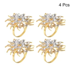 Unique Bargains Alloy Shiny Decorative Wear Resistance Rhinestone Crystal Flower Napkin Rings 4 Pcs