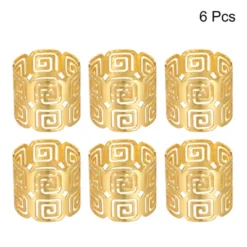 Unique Bargains Holiday Party Alloy Decorative Reusable Wear-Resistant Hollow Napkin Ring 6 Pcs