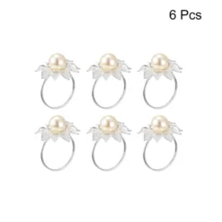 Unique Bargains Pearl Mesh Flower Metal Wear-Resistant Dining Table Decorative Napkin Rings 6 Pcs