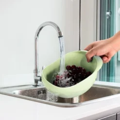 Unique Bargains Rice Washing Filter Strainer Fruit Vegetable Bowl Drainer Home Kitchen Green 2 Pcs