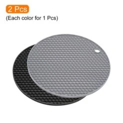 Unique Bargains Heat Resistant Non-slip Flexible Silicone Trivet Mat Light Gray, Black 2 Pcs