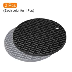 Unique Bargains Silicone Heat Resistant Non-Slip Flexible Trivet Mats Light Gray, Black 2 Pcs