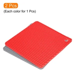 Unique Bargains Silicone Heat Resistant Non-Slip Kitchen Trivet Mats Light Gray, Red 2 Pcs