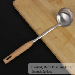 Unique Bargains Kitchen Wooden Handle Cooking Durable Soup Ladle 10.8” X 3” Silver Tone 1 Pc