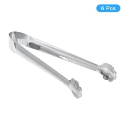 Unique Bargains Stainless Steel Ice Serving Tongs 4.5 Inch Silver 6 Pcs