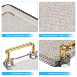 Unique Bargains Plastic Modern Rectangular Serving Trays With Golden Handle