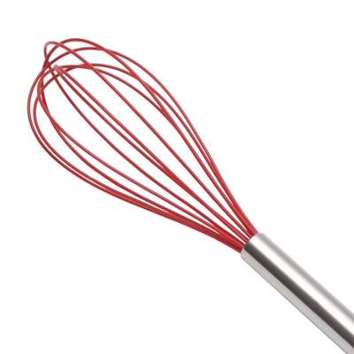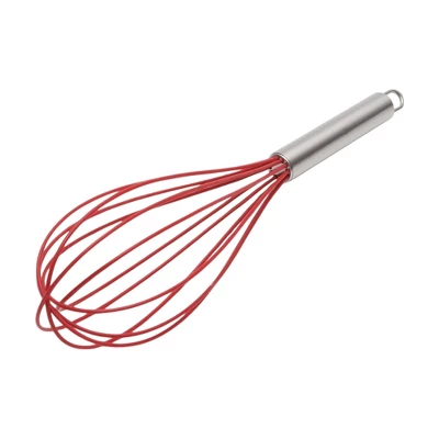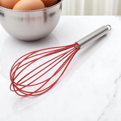 Unique Bargains 12″ 6-Wire Whisk Hand Wash Stainless Steel Silicone Red Silver Tone