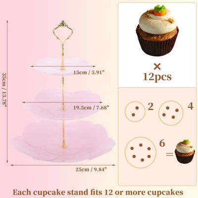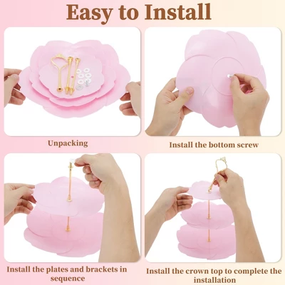 Unique Bargains 3 Tier Dessert Cupcake Stand Flower Shape Cup Cake Holder Tower Pink Gold Tone
