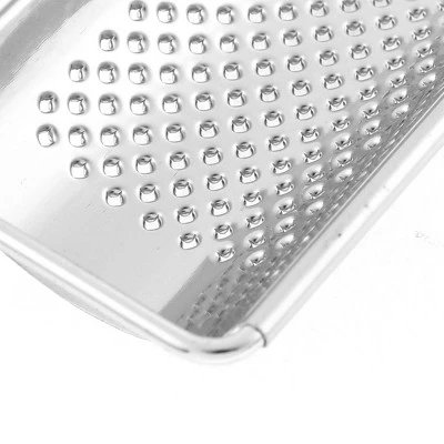 The grater is crafted from stainless steel, offering durability and a sleek silver tone. It is specifically designed for peeling ginger and other spices, making it a versatile addition to your kitchen tools. Widely used in daily cooking, this grater is an essential kitchenware item that enhances your food preparation experience. The stainless steel material ensures longevity and resistance to rust, making it a reliable tool for frequent use. Its ergonomic design provides a comfortable grip, allowing for effortless peeling and grating. The grater’s compact size makes it easy to store in your kitchen drawer or hang on a hook for convenient access. Whether you are preparing a small meal or cooking for a large gathering, this grater will meet your needs efficiently. The sleek silver tone adds a modern touch to your kitchen decor. This grater is not only functional but also easy to clean, saving you time and effort in the kitchen. Its versatile design can be used for a variety of spices, making it a valuable addition to your cooking arsenal. Upgrade your kitchen tools with this durable and efficient stainless steel grater.