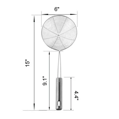 The mesh strainer is perfect for rinsing fruits, vegetables, dumplings, chips, fish, meat, and more! Perfect for frying utensils you need. The long handles protect your hands from hot grease and oils while letting you cook your favorite foods. The unique designed handle features easy and comfortable to hold, letting you work easier and faster. Convenient hanging holes on mesh strainer make for quick and easy storage or access, on home and kitchen storage racks.