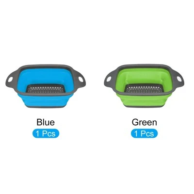 Why Choose It?3 colors offer to you, different colored colanders can be used for different foods to decorate your colorful kitchen.With evenly drainage holes at the bottom, draining water is fast and the effect is good, easy to use.Well designed side handles are easy to hold, also can be hung on the wall when not in use.The foldable design can be adjusted according to your different needs for easy storage.Heat resistant up to 230°F which makes it easier to strain hot stuff as well.Specification:Product Name: Square Silicone Collapsible Colander SetMaterial: siliconeColor: green,red,blueFold Size: 24cm x 18.4cm x 3cm/9.44 x 7.24 x 1.2inchExpand Size: 24cm x 18.4cm x 7.5cm/9.44 x 7.24 x 2.95inchWeight: 195gPackage Content: 2 x collapsible colander(green red)Suitable for: drain, wash vegetable, fruit and pasta