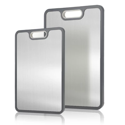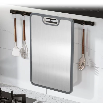 - Featuring a non-stick surface, this titanium cutting board is easy to clean by simply rinsing with water and wiping dry. Resistant to spots, rust, and odors, it offers hassle-free maintenance and a clean appearance. The built-in portable round handle enables hanging for drying and convenient carrying.