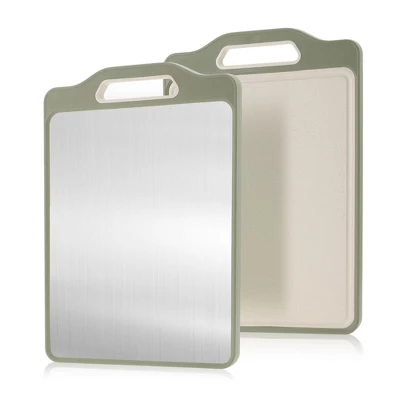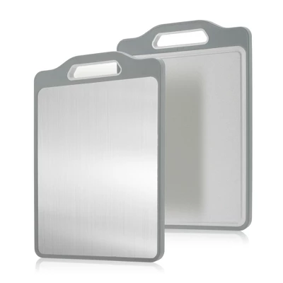 - Elevate your kitchen with a stainless steel cutting board offering dual-sided functionality