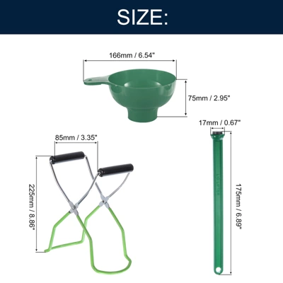 Made of strong and durable metal with an electroplated coating for extra durability. Comfortable handles and smooth hinges make it non-slip and effortless to use. The canning lifting tongs are safe and convenient to use. Its PP handles clamp securely on the top of the jars, making it easy to lift any size canning jars out of boiling water while keeping your hands safe. These canning tool kits are versatile and suitable for all types of canning jars. From small glass jars to standard-sized and larger canning jars, they are suitable for home or restaurant use.