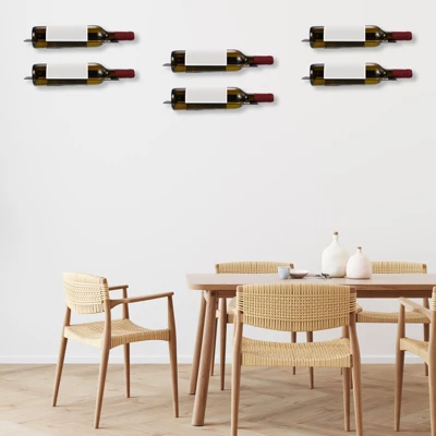 The wine bottle rack is designed to save counter and floor space by storing bottles horizontally, keeping the cork moist, and preventing air from leaking in. It is made of iron material with a powder finish, ensuring durability and resistance to rust or fading. The rack is easy to install with pre-drilled holes and can hold one wine bottle securely. Suitable for use in the kitchen, pantry, cabinet, dining room, basement, countertop, bar, or wine cellar. Simply wipe down with a damp cloth to remove dust. Please note that there may be slight differences due to manual measurement and monitor settings.