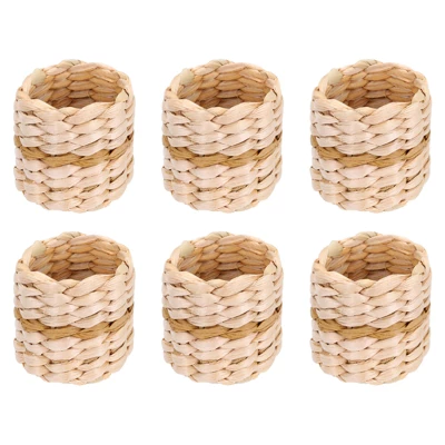 The farmhouse napkin rings are crafted from natural cattail grass materials, ensuring durability and reusability. They protect your napkins from spills, offering a neater appearance than traditional table decorations. The hand-woven design is versatile and complements other table accessories, bringing a refreshed look to holiday or family dinner tables. These napkin rings are easy to use; simply fold the cloth napkin into the desired shape, insert it into the ring, and place it on your table as a functional ornament. Suitable for various occasions, these round napkin holders are ideal for homes, parties, bars, cafes, weddings, dinner parties, wedding receptions, holiday gatherings, and family events.