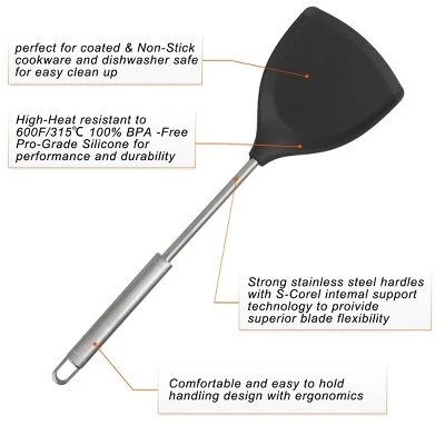 - Silicone material perfect for coated and non-stick cookware