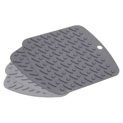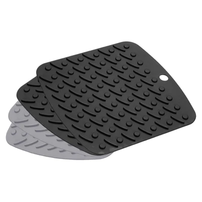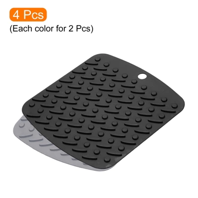 The silicone trivets are crafted from quality silicone material, offering heat resistance, waterproof capabilities, and a non-slip surface. These mats are flexible and durable, ensuring they remain in shape even after twisting or pulling. With a heat resistance range of -104℉ to 446℉, they protect countertops from hot pots and are safe for use in ovens, freezers, microwaves, and dishwashers. Their easy-to-clean nature allows for hand washing or dishwasher use, and they can be conveniently stored in a drawer or hung on a hook. These versatile trivets also serve as pot holders, placemats, coasters, spoon holders, and more.