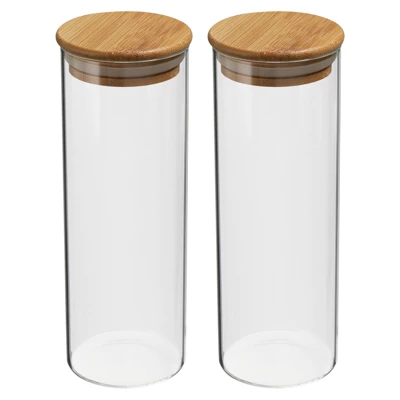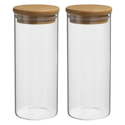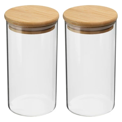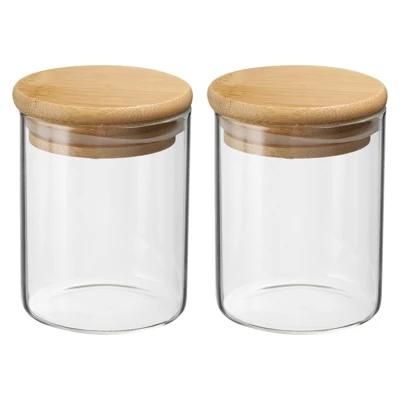 - Material: High Borosilicate Glass, Bamboo Lid; Packing List: 2 Pcs x Glass Jars with Bamboo Lids