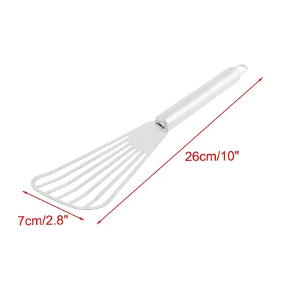 The sleek design of the fish spatula offers you the nimble flexibility needed to handle delicate foods. The fish spatula lets excess liquid drip through the slots thanks to its slotted head. Cook like a pro with a fish spatula. Get ready to prepare delicious food like a pro. Won’t scratch your cookware, including your ceramic, copper, metal, cast iron pot pans, woks, etc. This fish spatula is a great way to help you prepare meals for your family every day. And it’s easy to maintain. Stainless steel, rust-resistant.