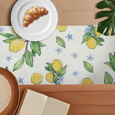 - Lemon table runner measuring 13 x 72 inches, suitable for tables seating 4-6 people.