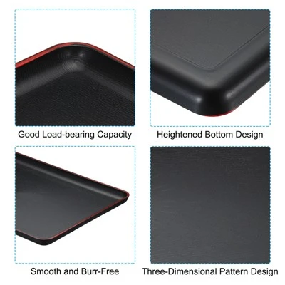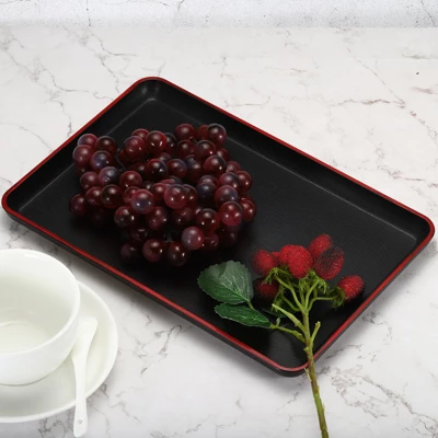 This plastic rectangular tray is designed for durability and functionality. Made from plastic, it is strong, lightweight, and deformation-resistant. The tray features a wood grain design that enhances its aesthetic appeal while providing an anti-slip surface. It is perfect for holding a variety of foods and beverages, making it ideal for use in homes, restaurants, and parties. The tray’s smooth, rounded edges ensure safe and easy handling, while the bottom pattern design prevents slipping and protects surfaces from scratches.