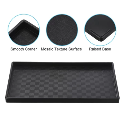 The plastic fast food tray is versatile for holding food, sides, utensils, and drinks, making it easy to transport from check-out lines to tables. Constructed from durable plastic material, it is lightweight, reusable, and has a strong load-bearing capacity. The modern texture surface adds elegance, while the raised base enhances comfort in handling. Ideal for use in dining areas and self-service restaurants.