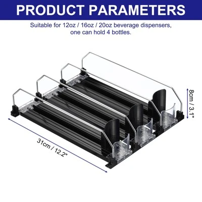 The divider is made of stainless steel, waterproof and rust-proof. The push rod is made of ABS material, which has a good bearing capacity and strong wear resistance. Spring-loaded for high performance and durability. The horizontal rails are made of PVC and can be cut as needed to adjust the width to suit more applications. Suitable for 12oz / 16oz / 20oz beverage dispensers, one can hold 4 bottles. This drink organizer has a smooth surface, the polishing effect is good, neat, and generous, and you don’t have to worry about hurting your hands. This refrigerator drink dispenser can be used to push a variety of bottles such as soda, beer, wine, and more. Adjustable width for all sizes, allowing us to choose without the limitations of a drink dispenser for the fridge. This spring-loaded beverage dispenser for the fridge is very easy to assemble without any tools required. Easy to assemble, no need to use any screws or tools. Just need to push back on the spring and insert the cans. You can use this bottle organizer for your refrigerator, pantry, counter, store, desk, etc. Note: If it needs to be disassembled after installation, it is recommended to remove them by sliding them out one by one over the horizontal bar.