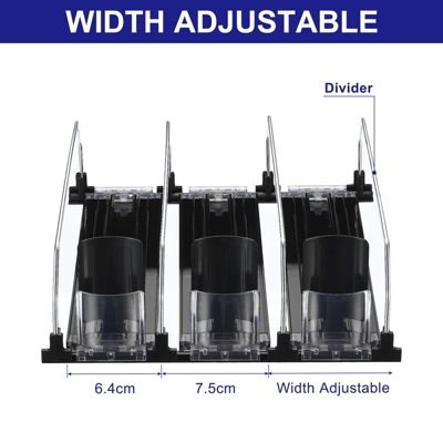 - Its adjustable width design allows you to put different widths of drinks in the fridge organization