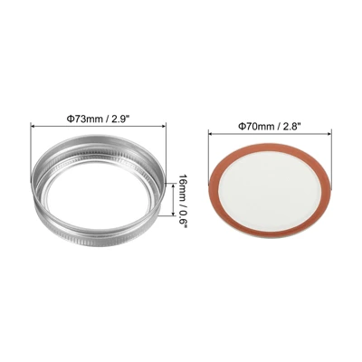 Made of durable iron material, with a split design, there is a sealing coating ring on the inside of the jar lid. The edge of the lid is designed with non-slip ribbing, which makes it easy to open and tighten the jar lid. Good sealing to keep food fresh, perfect for regular mouth jars for dry storage or freezing in the refrigerator. Easy to use, just install the lid on the jar mouth and tighten it to seal. Note: Please make sure the correct size you need before ordering.
