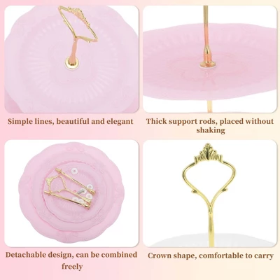 Feature:This cupcake stand holder is made from quality PP material, ensuring sturdiness and durability and having a long service time.This dessert cupcake stand makes it suitable for a wide range of occasions, including weddings, birthday parties, baby showers, and more. This cupcake stand holder is easy to assemble with no tools required, making it convenient to set up for your event. The adjustable tiers of this cupcake stand holder allow you to customize the display according to your needs. Featuring a space-saving design that allows you to save counter or table space while displaying a large number of cupcakes.Specification:Material: PP;Height: 35cm / 13.78″;Plate Size: 15cm / 5.91″, 20cm / 7.87″, 25.5cm / 10.04″;Package List:1 Set Cupcake Stand Holder.