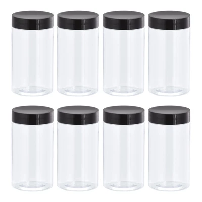 - Package comes with 8 Pcs of Clear Plastic Storage Jars with black screw top lids for your various needs