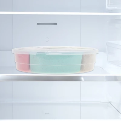 Food storage box, compartment design, dry and wet separation, neat storage, easy access, suitable for storing fruits, vegetables, seafood, meat, tableware; effectively use every inch of kitchen space, easily and quickly take the food or items you want; prevent refrigerator odors, prevent various meat and vegetable flavors from mixing together.