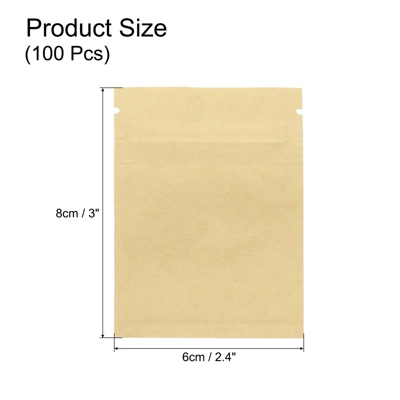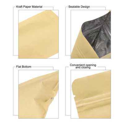 These Kraft paper sealable bags are designed for efficient food storage and sample packaging. A foil lining offers a protective barrier against moisture, ensuring the freshness of stored items. The resealable zipper design allows for easy access while maintaining product freshness and extending shelf life. Perfect for storing snacks, spices, herbs, crafts, and small accessories, these bags are suitable for use in home kitchens, bakeries, cafes, and retail environments. Store in a cool, dry place away from direct sunlight to maintain quality.