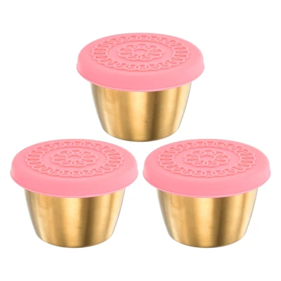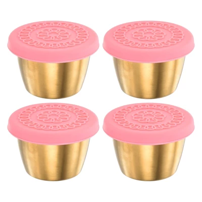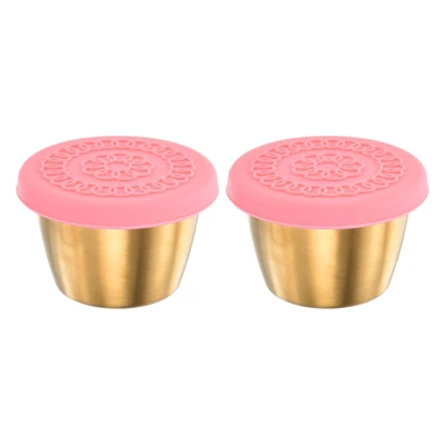 These dressing containers for lunch boxes are made of silicone and durable stainless steel, ensuring no chemical odor and reducing the use of disposable condiment cups. With a compact size of 2.4 oz (70 mL), they meet your small-capacity storage needs. The containers feature leak-proof and airtight silicone lids that fit tightly, preventing spills and keeping the contents fresh. The colorful, soft silicone lids are easy to open, even for children, and the handles provide convenient opening and closing. These portable, lightweight, and stackable containers are great for work lunches, picnics, barbecues, parties, travel, and more. They are suitable for holding dips, jams, salad dressings, sauces, condiments, and more. The smooth surfaces make them easy to clean by hand or in the dishwasher, preventing food residue from sticking and saving you time and effort.