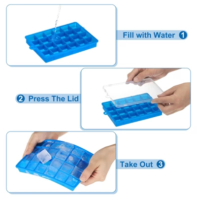 Enhance your kitchen with these versatile silicone ice cube trays with lids, designed for easy ice release and optimal convenience. The soft silicone base ensures that the ice cube is out effortlessly, while the lids help maintain freshness and prevent spills. Ideal for a variety of beverages, these trays are perfect for home bars, parties, and more. Get creative by adding fruits or foods to make a colorful DIY ice cube. These trays are easy to clean and stackable, making them a practical addition to your kitchen accessories.