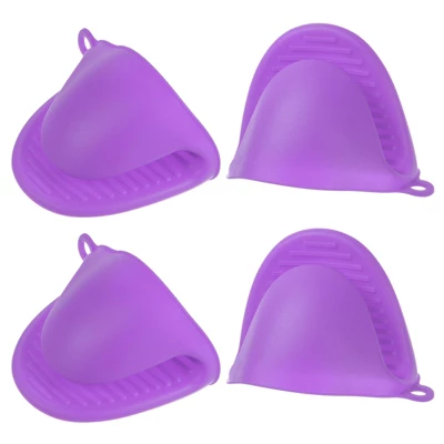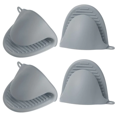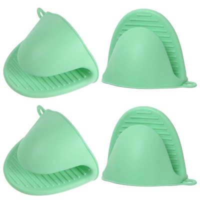 Made of soft silicone material, light and comfortable. Good toughness is not easy to tear and can be used repeatedly. With an anti-slip design, the mini oven glove can firmly handle wet and slippery items, which also can help you safely grab hot items in the kitchen or outdoor barbecue. With a hanging hole, you can easily hang it on the oven door handle or hang it on a hook. Silicone pot holders are mouth-shaped with two small silicone cups that are hinged together. The silicone pot holder protects your hands from heat, so you can hold hot items firmly. Helps you grip pot lids, pans, grill pans, and grills for kitchen, cooking, baking, and BBQ. It is made of silicone material, please do not touch high-temperature metal products for a long time.