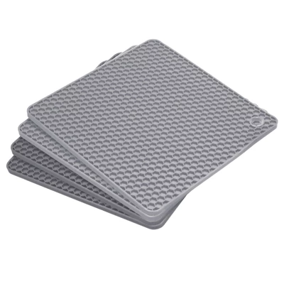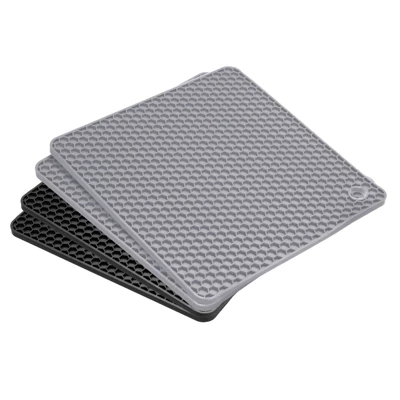 The silicone trivets are crafted from good-quality silicone, ensuring they are heat-resistant, waterproof, flexible, durable, and non-slip. These trivets are soft and foldable, maintaining their shape even when pressed, twisted, or pulled. They provide excellent protection for countertops and tables from hot pots and are safe for use in the oven, freezer, microwave, and dishwasher. Easy to clean and store, they can be washed by hand or dishwasher and stored in a drawer or hung on a hook. These versatile trivets can be used as insulation gloves, placemats, coffee mats, trivets, coasters, spoon holders, drying mats, or can openers.