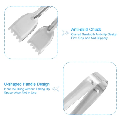 The durable stainless steel construction provides strength and resistance to corrosion, ensuring that these serving tongs will remain in great condition even with regular use. The sleek and polished finish adds a touch of elegance to any table setting. Their slim and compact shape allows for easy handling and precise control when picking up small items such as ice or sugar, and provides a secure grip, preventing slippage during use. These serving tongs are easy to clean; the stainless steel material is resistant to staining and odor absorption, ensuring that your tongs will be ready for their next use in no time. These versatile ice tongs can be used in various settings to hold sugar, snacks, cookies, candy, fruit, appetizers, and more, adding a touch of convenience and elegance to your dining experience.