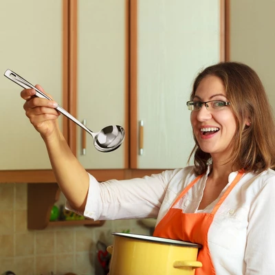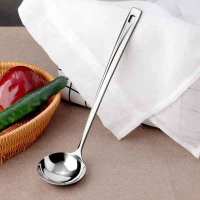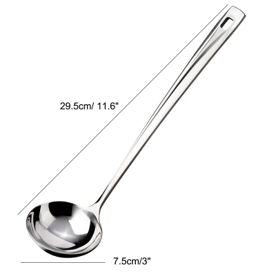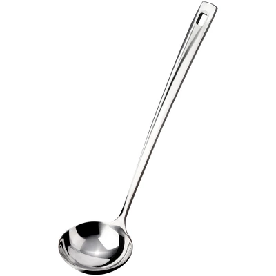 Stainless Steel soup ladle scoop, easy to clean, great for home restaurant kitchen and catering industry use. Long handle make you more safe and comfortable to use. There is a hole at the end of the handle, you can hang it on the wall and dry it. The long handle is very comfortable in hand. With ample bowl capacity it is perfectly proportioned for stirring, serving soups, stews and more.