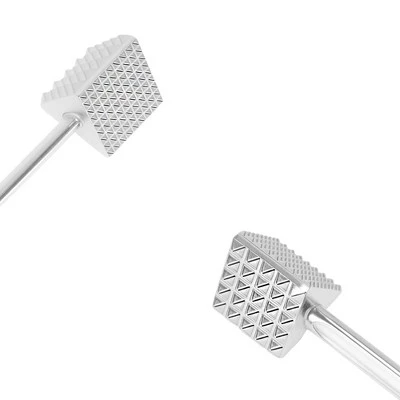 - The meat mallet features a robust three-sided head with smooth flattening side and pyramid-toothed tenderizing side, effectively dispersing meat fibers for easier preparation.