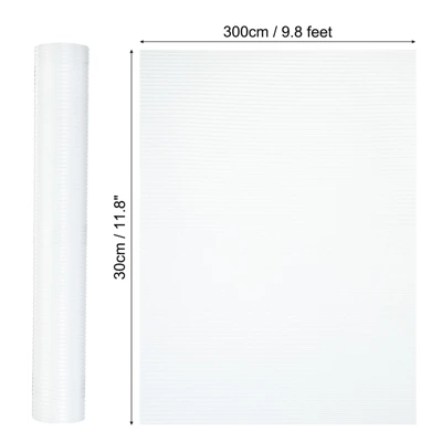The EVA shelf liners are designed to protect shelves, drawers, cabinets, and surfaces from scratches and moisture. They provide a non-slip surface for items placed on them, making them suitable for kitchen cabinets, pantries, drawers, closets, RV, and more. Made of durable EVA material, these liners feature a transparent design that maintains the original appearance of your shelves or drawers. The ribbed texture on the surface helps keep stored items in place. They are easy to cut into desired sizes and shapes, and the smooth surface makes cleaning and maintenance effortless. Ensure the shelf or drawer surface is clean and dry before use to prevent dust or moisture accumulation.